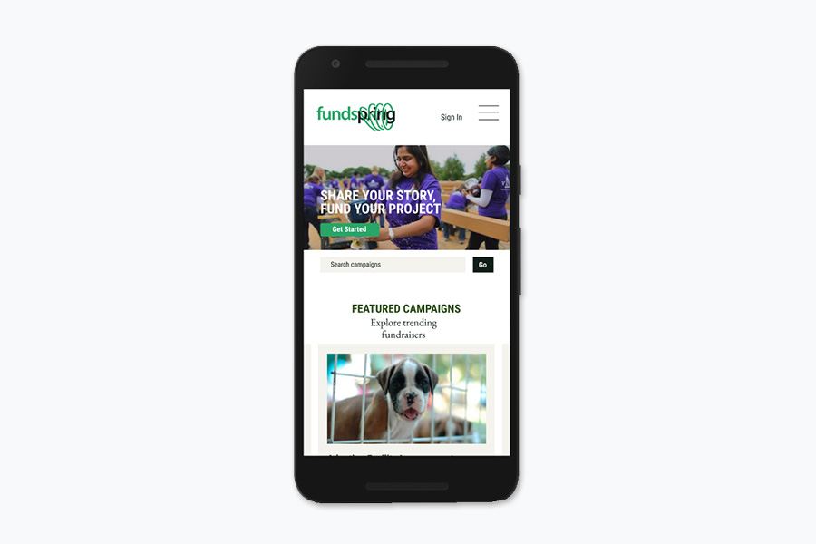 Fundspring is a website that provides an easy, guided approach to creating and sharing fundraising campaigns. It was completed as a capstone project for the Springboard UX Design course.
